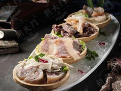 火鍋桌上中央區域,可擺放特色肉品,如毛肚、黃喉、鴨腸、羊肉卷、牛肉片等,突顯主菜地位,也便于客人直觀看到,并挑選自己喜愛的菜品食用,同時,根據食客的不同需求,在周圍擺放蔬菜、豆腐等等素菜,豐富火鍋的口感和營養價值。